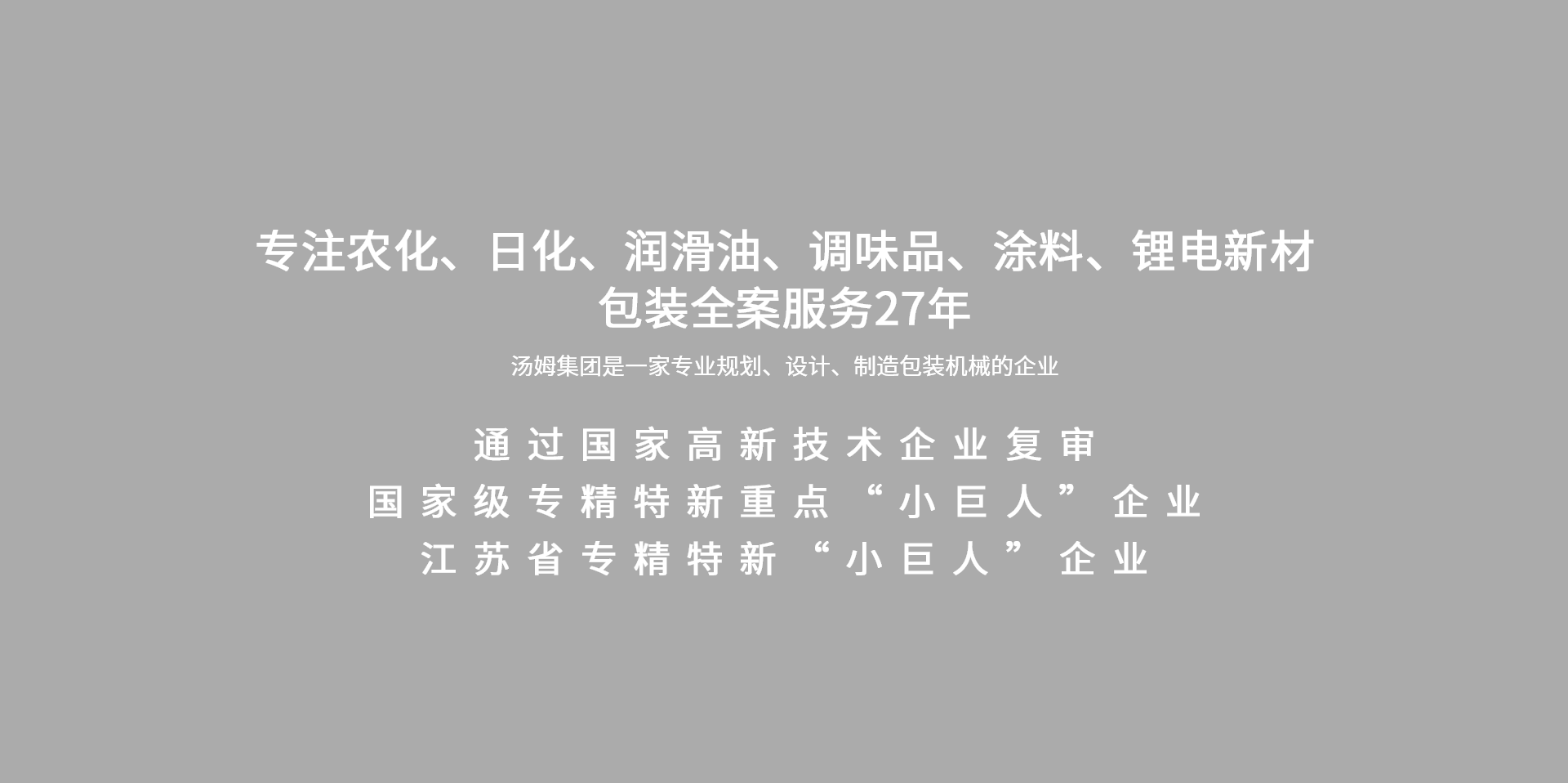 江蘇湯姆集團(tuán)在液態(tài)、粉體、固體、顆粒等包裝領(lǐng)域的專長保證了工藝設(shè)計(jì)與整線工程的完美結(jié)合。建立了農(nóng)化、石化、調(diào)味品、日化、涂料等不同包裝領(lǐng)域的工藝設(shè)計(jì)體系,根據(jù)不同的包裝形式及具體的工廠布局,均可提供專為您項(xiàng)目而量身定制的交鑰匙解決方案 。